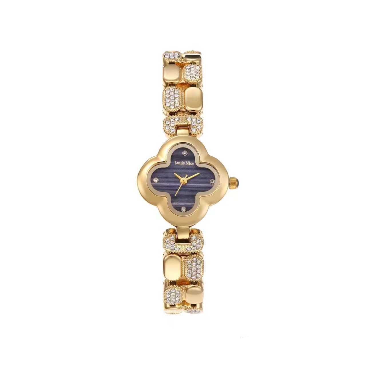 ساعة بتصميم ذهبي فاخر بشكل زهرة أنيق يبرز أنوثتك بأسلوب راقٍ ✨
